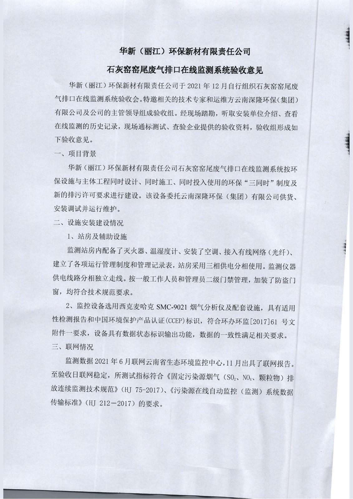 1、華新(麗江)環(huán)保新材石灰窯窯尾廢氣排口在線監(jiān)測系統(tǒng)驗(yàn)收報(bào)告.pdf