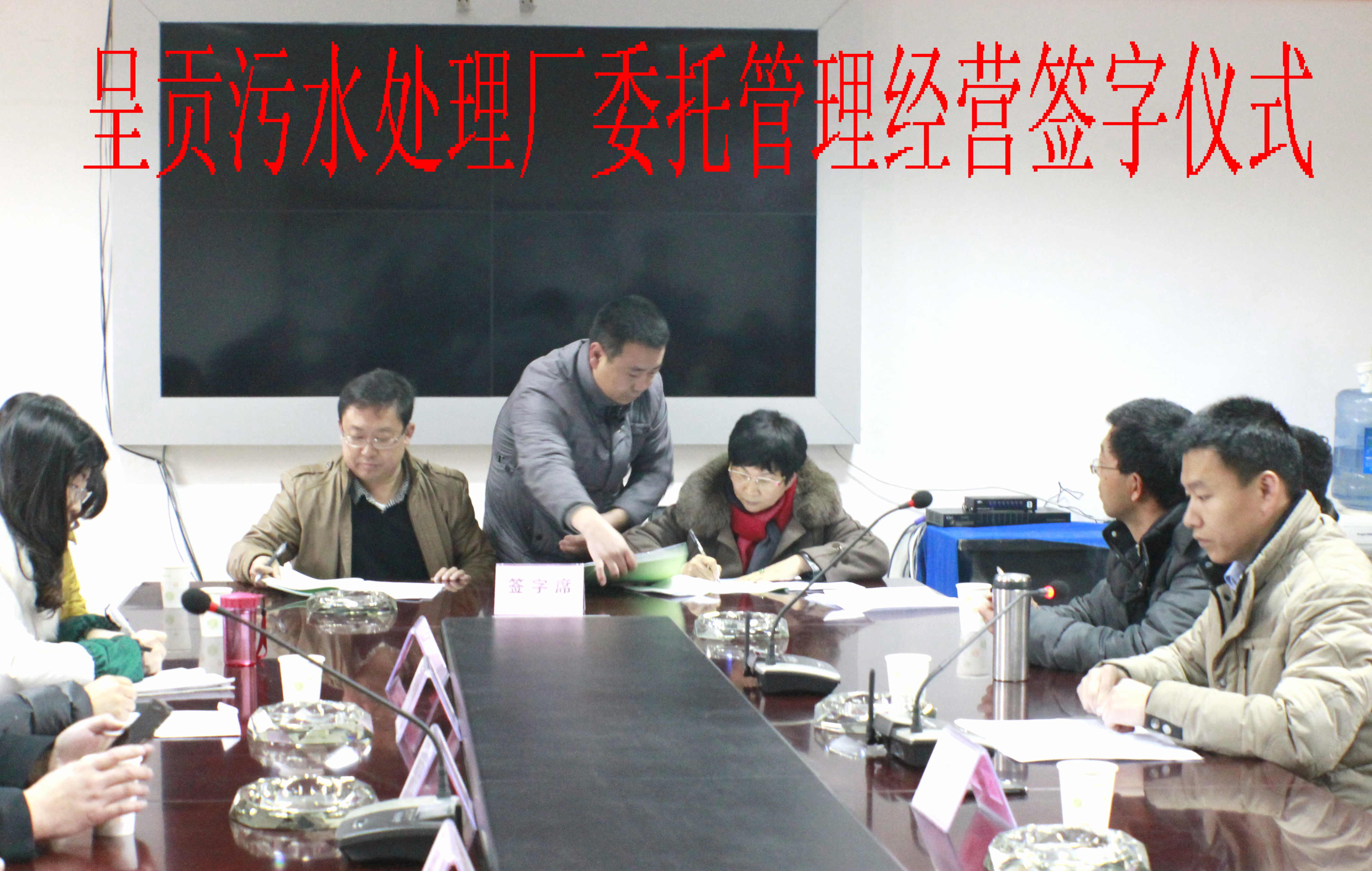 圖一:呈貢污水處理廠委托云南深隆環(huán)保有限公司經(jīng)營簽字儀式